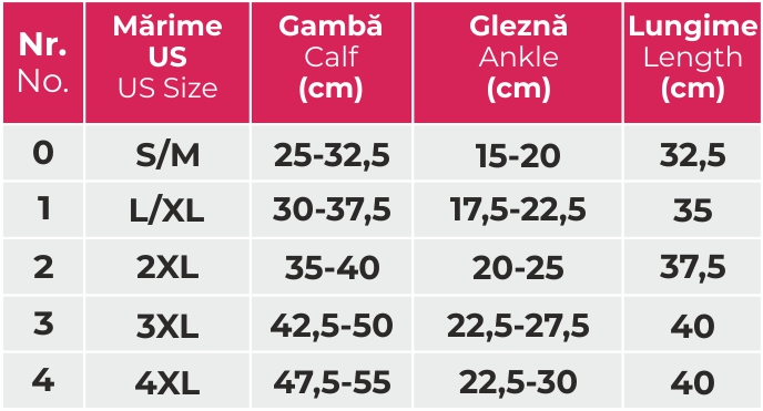 Va rugam stabiliti masura corespunzatoare in functie de circumferinta piciorului deasupra gleznei și gamba).